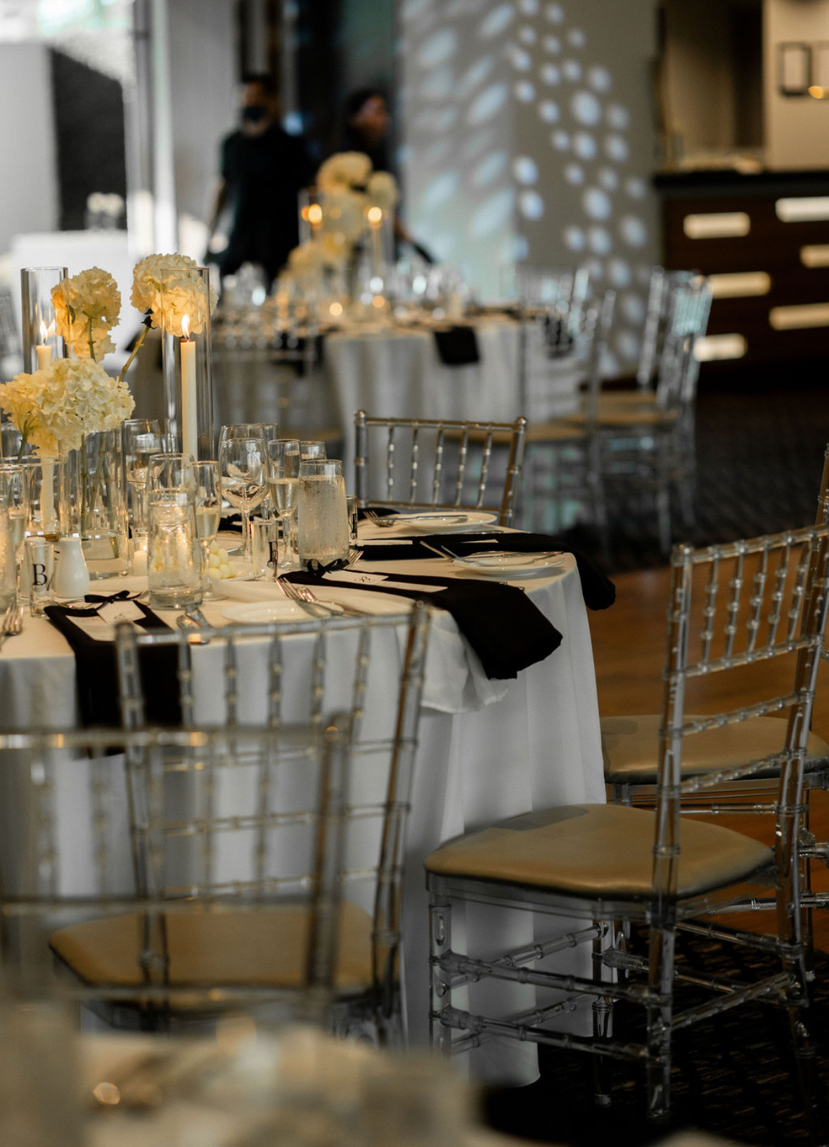 - Personal decor set up (table center pieces, seating chart, receiving table etc.)